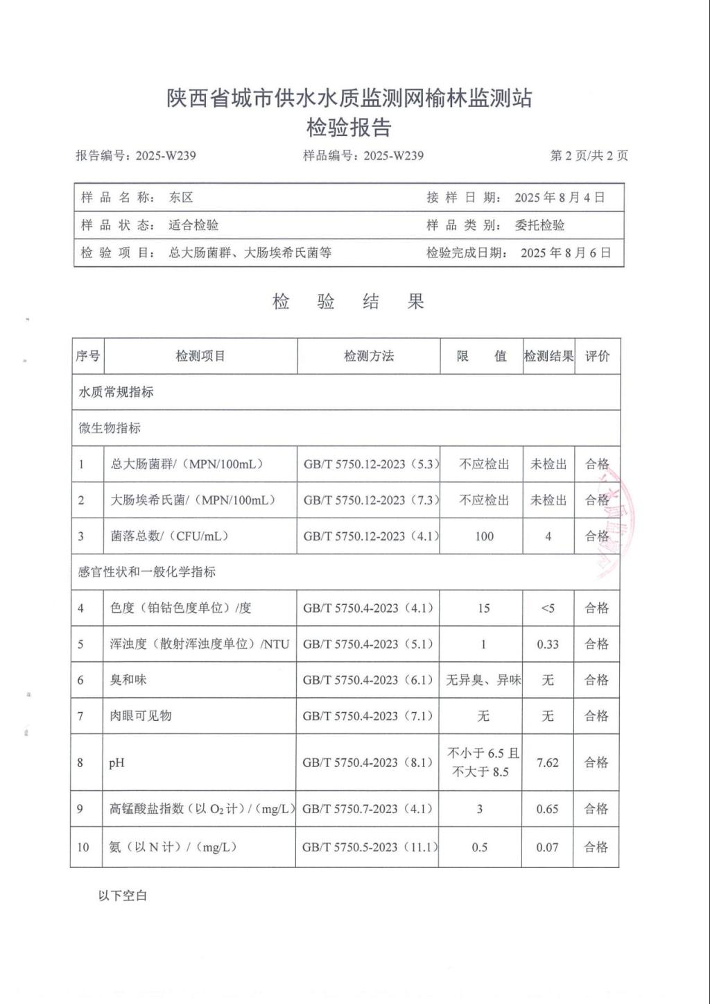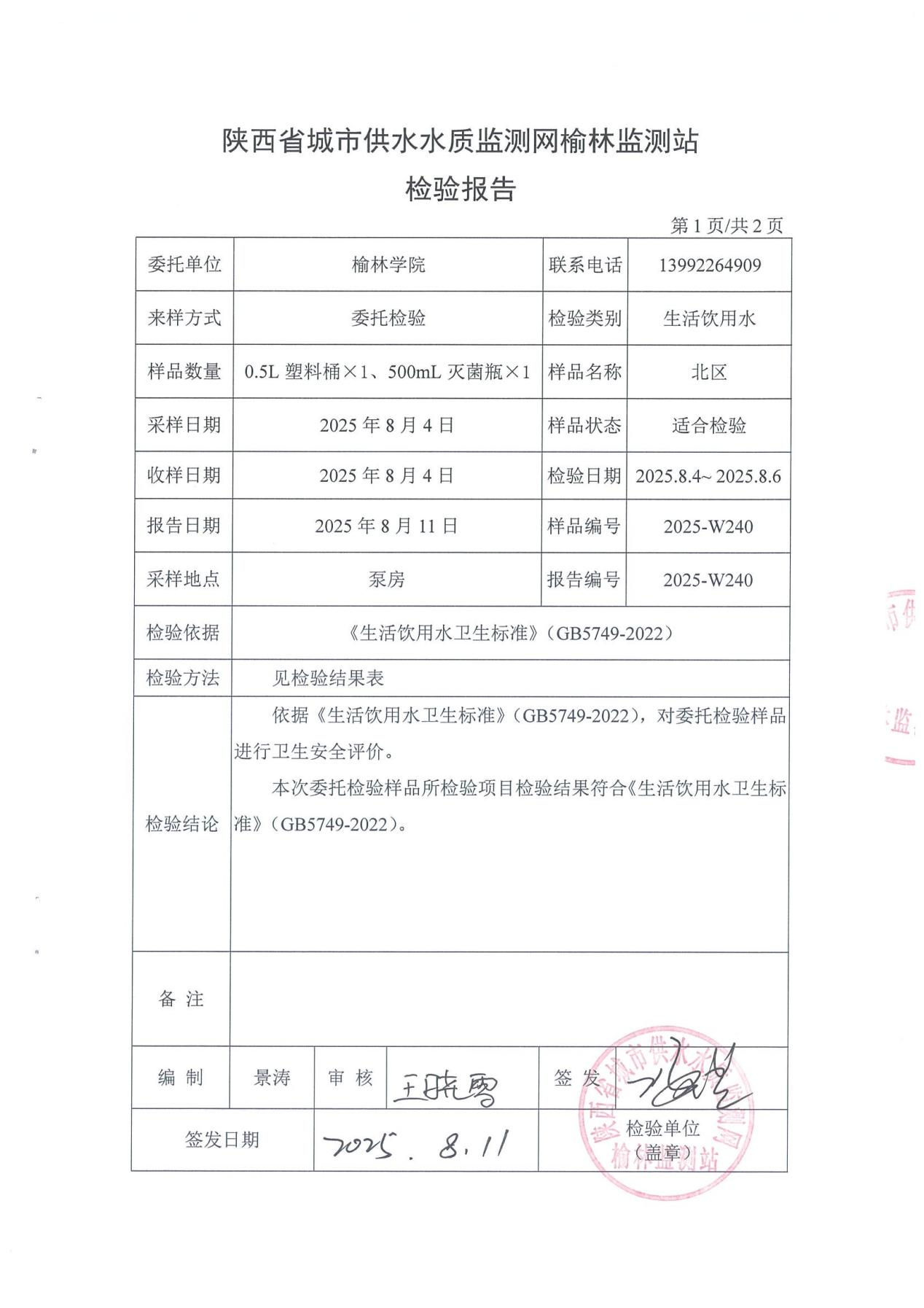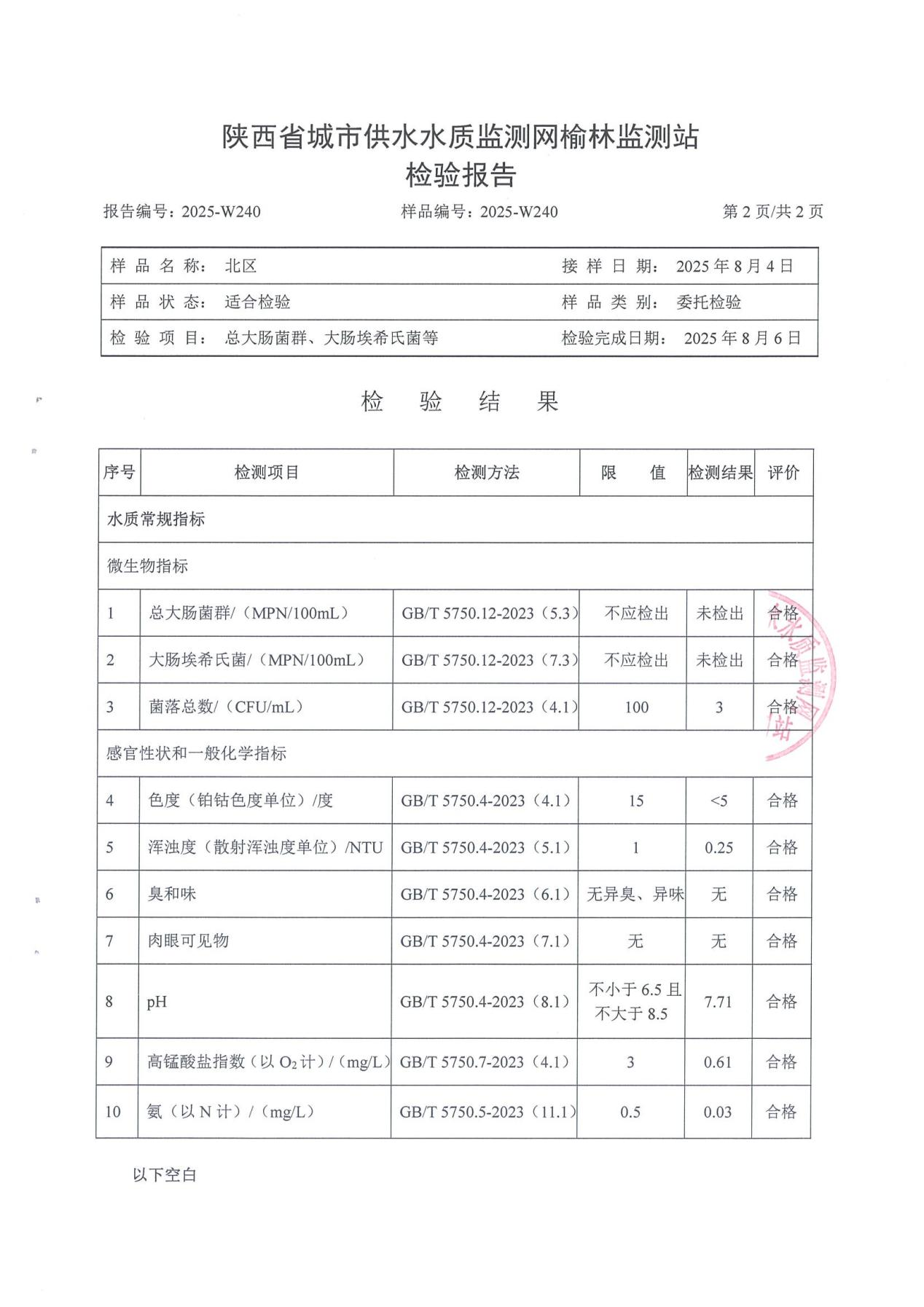 2、北区水质化验报告