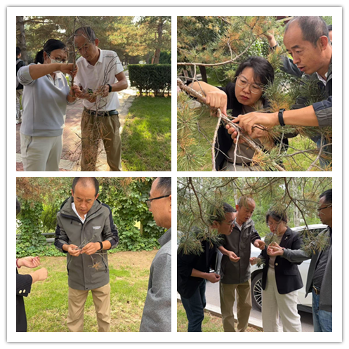 近日,我校园内多株樟子松出现针叶枯黄、枝条萎蔫甚至有整株死亡的倾向,部分区域树木病害呈扩散趋势,引发师生广泛关注。为科学应对这一突发情况,9月17日下午,后勤管理处邀请榆林学院现代农学院贺英教授(植物病理学专家)、9月18日下午,后勤管理处联合市林业科学研究所、市园林处、陕西省治沙研究所等机构,邀请到4位林木病理学、森林保护领域专家组成会诊团队(其中两位专家线上会诊),深入校园开展实地调查与病因分析,一场针对校园“绿色卫士”的健康保卫战就此展开。
