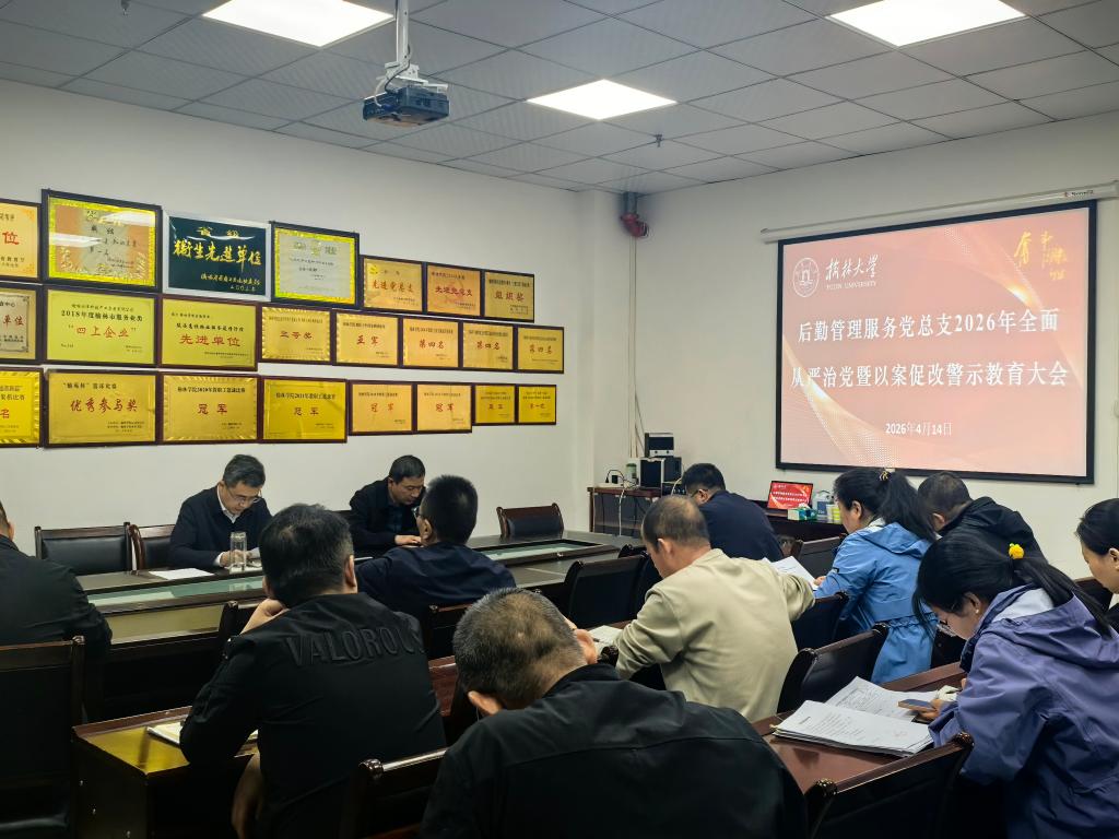 4月14日上午,后勤管理服务党总支在资产公司会议室召开2026年全面从严治党暨以案促改警示教育大会。会议由党总支书记鲍亮亮主持,后勤管理处、资产公司科级及以上干部、全体党员参加会议。